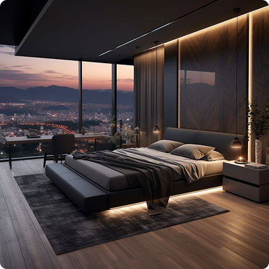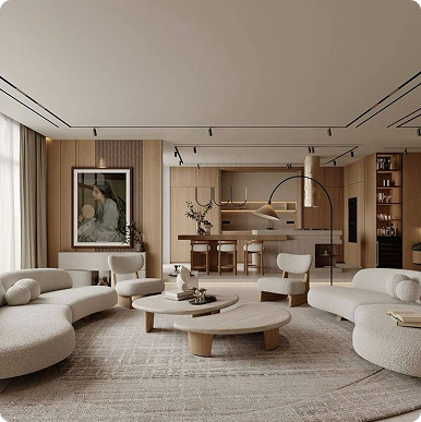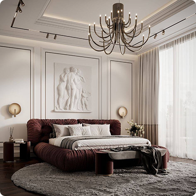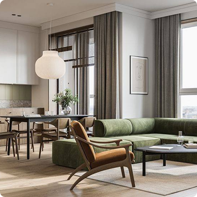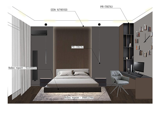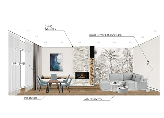 существующем фоне, интегрируя мебель, шторы, светильники и аксессуары.
